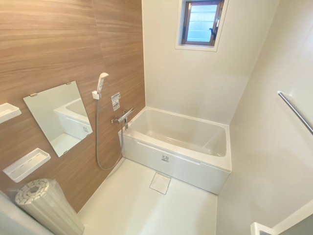 キッチンとお風呂は木目調を採用し、明るい空間に映えるアクセントとなっております。