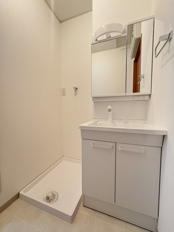 - 仲介店舗へのヒアリングによると、物件のあるエリアでは3LDKの間取りが少なく、非常に人気が高いため、間取りの変更は行わず、内装と設備のグレードアップを中心としたリフォームを実施しました。リビング横の和室は、洋室へと変更を行い、傷や色褪せが目立っていたリビングや居室、廊下などのフロアタイルを全面的に明るい印象のある白っぽいフロアタイルへと変更を行いました。また、水回りも劣化していた独立洗面台・お風呂の水栓・キッチンも新品へと交換し、トイレもクロスの張替えや設備の交換を行いました。セキュリティ面でも、古くなっていたインターフォンを新品へと変更を行いました。