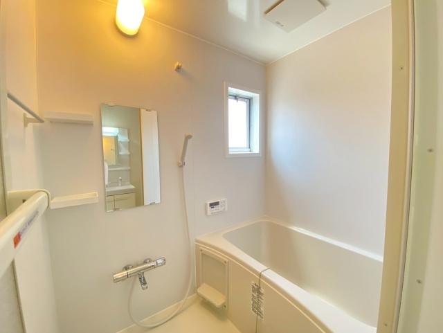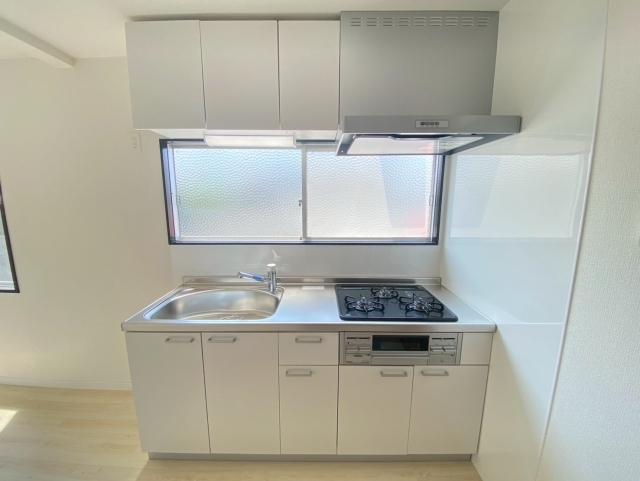 キッチンは3口のビルトインガスコンロ付システムキッチンの新品へと交換しました。お風呂はユニットバス入替を行い、水栓もサーモスタットタイプへ変更し、温度調整がスムーズになりました。