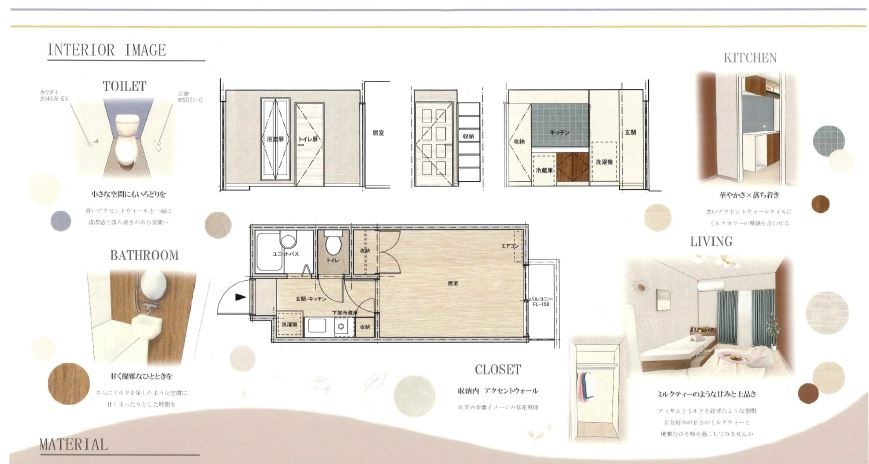 駒沢女子大学との産学連携プロジェクト コマジョスタイル2024 採用プラン ”MILK TEA TIME -暮らしの中に上質なひとときを-”を府中市の1Kマンションにて施工致しました