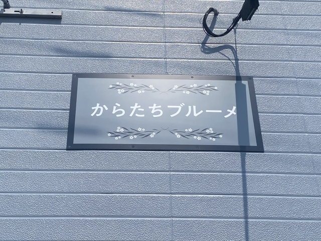 アパート名の”ブルーメ”はドイツ語で”花”という意味があるため看板にお花をデザインしました!