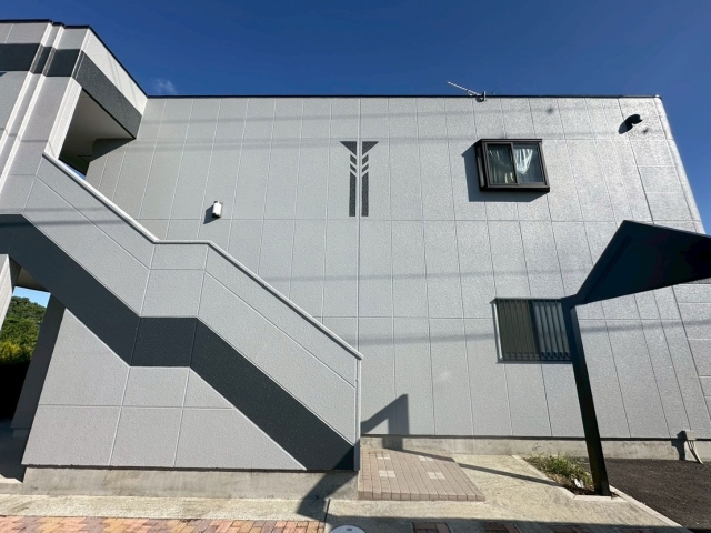 外壁塗装に加え、長尺シート施工や駐車場の白線引きも行ったことで、建物全体が美しく生まれ変わり、オーナー様にも大変ご満足いただけました。