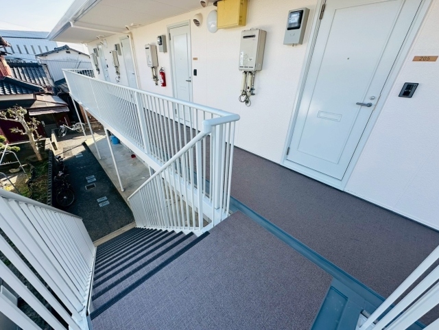 - 屋根や外壁に塗装を行い、美観を向上させました。外壁は以前より明るい色味を採用し、建物全体の印象を明るくしました。また、共用廊下や階段には、長尺シートを施工することで、安全性を高めました。駐車場は、白線が見えづらくなってしまっていたため、引き直しを行い、利便性をアップしました。さらに、表札は部屋番号がほとんど見えなくなってしまっていたため、新しいものに取り替えを行い、視認性を高めました。