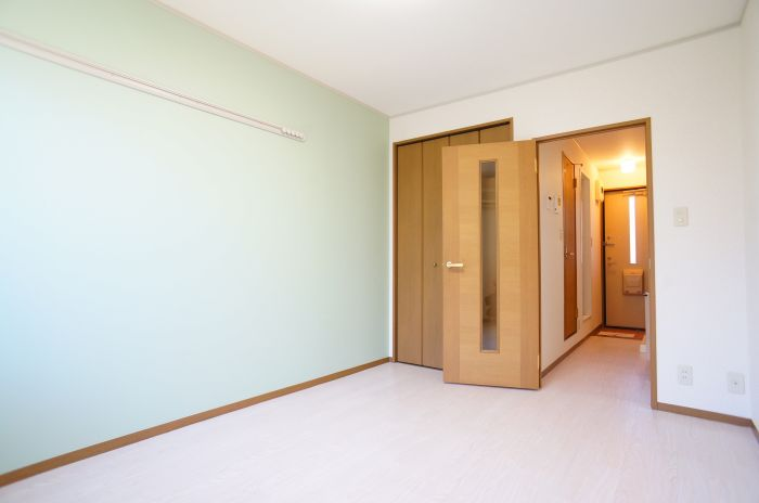 暗い印象だった内装を、白基調の床材とアクセントクロスで明るく一新しました。学生が多い地域のため、室内物干しやTVドアホンなど、若年層に必須の設備を安価に導入しています。賃貸管理会社の知見を活かした的確な提案と、内見時の訴求力強化が実を結び、短期間での成約と、オーナー様の収益最大化を実現した事例です。